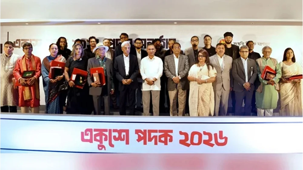জাতীয় জীবনের বিভিন্ন ক্ষেত্রে গৌরবোজ্জ্বল ও কৃতিত্বপূর্ণ অবদানের স্বীকৃতি হিসেবে ৯ জন বিশিষ্ট ব্যক্তি ও একটি স্বনামধন্য প্রতিষ্ঠানকে দেশের দ্বিতীয় সর্বোচ্চ বেসামরিক সম্মাননা ‘একুশে পদক ২০২৬’ তুলে দিয়েছেন প্রধানমন্ত্রী তারেক রহমান।