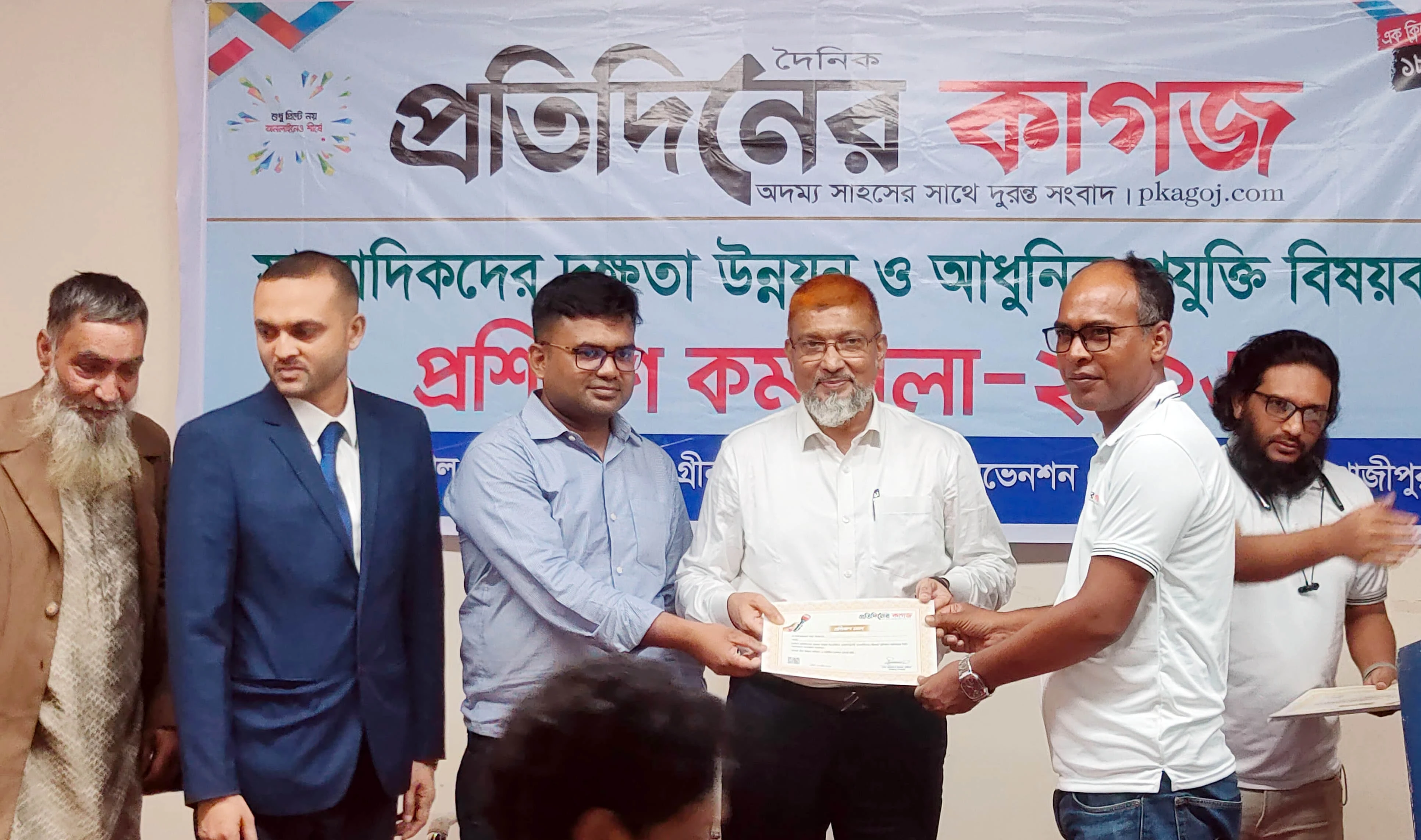 শনিবার (১৮ এপ্রিল) দৈনিক প্রতিদিনের কাগজ-এর প্রতিনিধি সম্মেলন অনুষ্ঠিত হয়। অনুষ্ঠানে সারা দেশ থেকে আগত সাংবাদিকরা অংশ নিয়ে প্রশিক্ষণ গ্রহণ করেন। প্রশিক্ষণ শেষে অংশগ্রহণকারীদের মাঝে সনদপত্র বিতরণ করা হয় এবং বর্ষসেরা সাংবাদিকদের সম্মাননা প্রদান করা হয়।